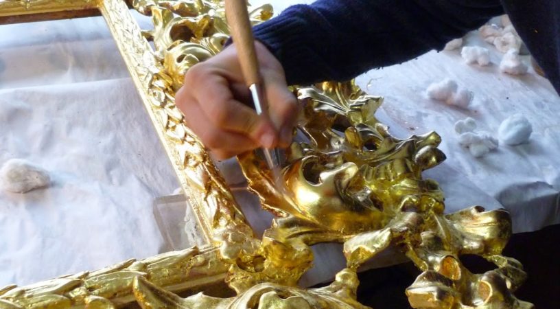 A year ago one of our clients sponsored our business Antique Refinishers in San Diego to sent me to learn gilding.Coming back form Portland, Oregon where I learn with Nancy Thorn I started on a restoration on a frame from our client. The mirror had been “restored” with gold paint over the giding on 50% of the […]