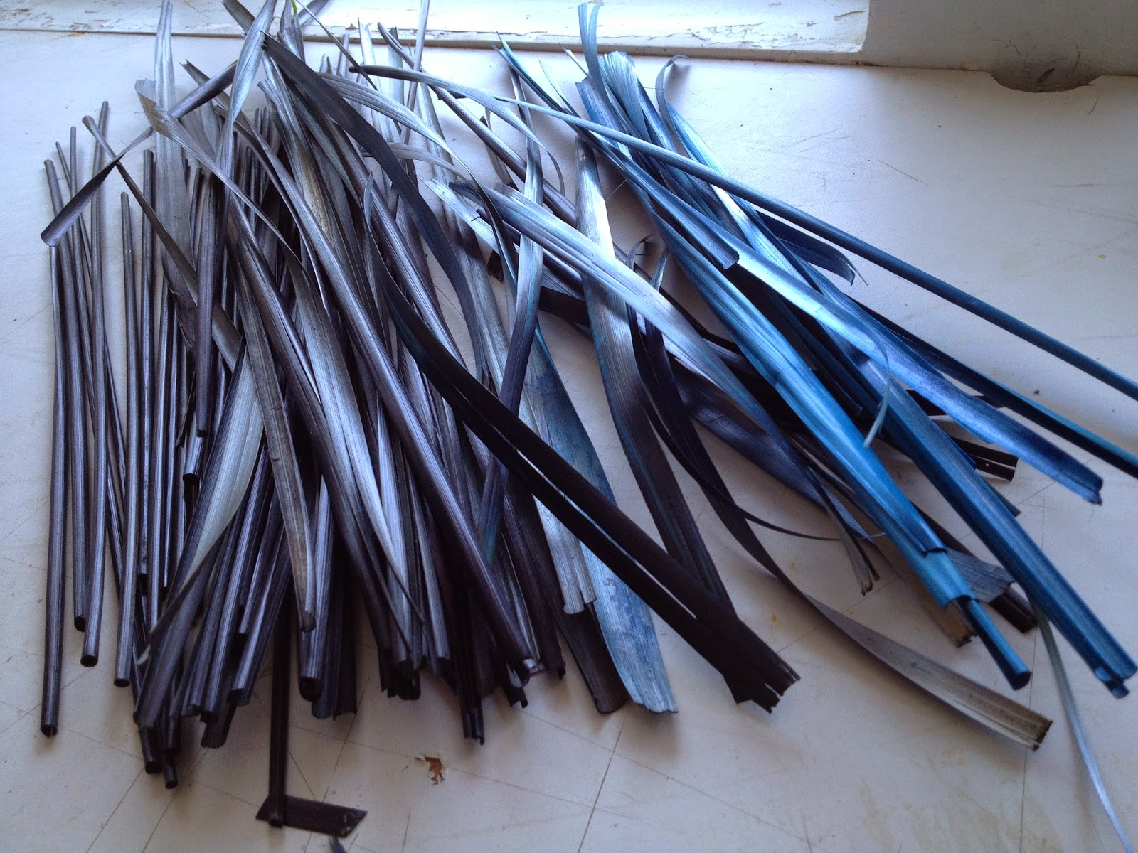 I did not know what to do until a week before delivery. I had some straw sitting around for me finding the time to work on it. The black and blue dyed straw seems to fit the theme and I did it.