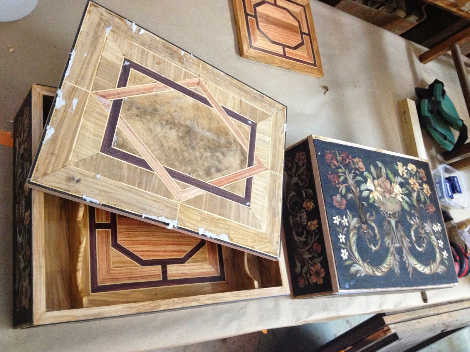 End of 2011 Patrick Edwards and myself found a box sold at Christie’s for €15,000. We really liked the layout of the marquetry even if in detail the marquetry was average. We decided almost immediately to start on in as a spec job.